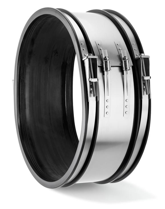BML-Connector for connecting bridge drainage pipes made from cast iron, GRP or stainless steel.